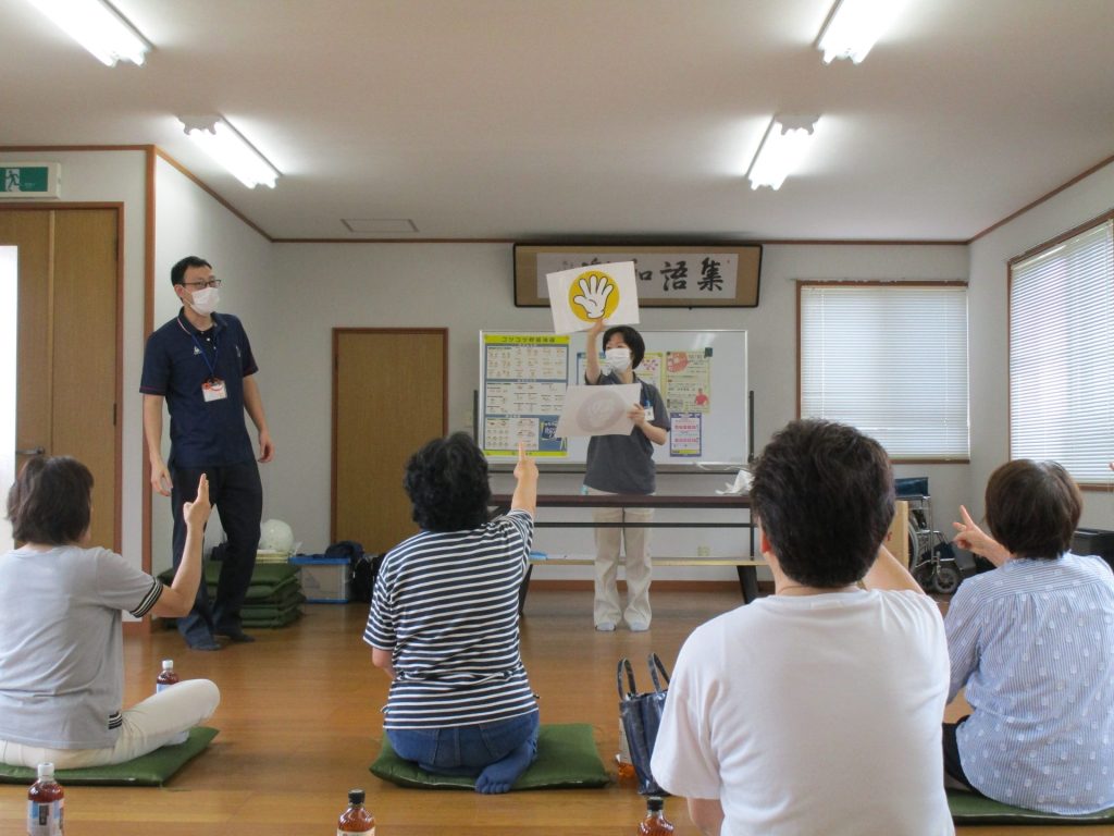 西域包括支援センターあかさかやま様とたんねの里と共に鯨波地区の「介護予防教室」へおじゃましました。鯨波、東の輪、川内の3町内で体と頭の体操を実施し、施設の紹介をさせていただきました。