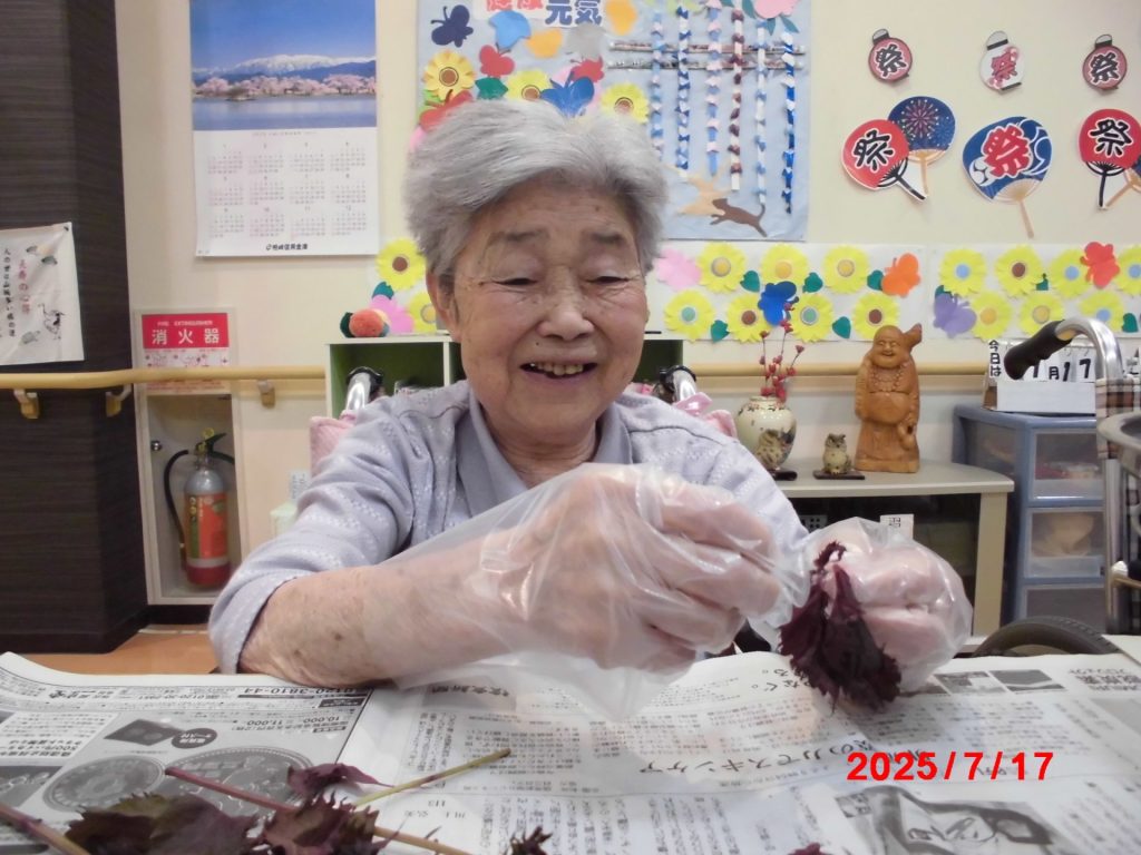 しその葉をちぎる作業から始まり、様々な工程を経て、最後には美味しいしそジュースが出来上がりました。