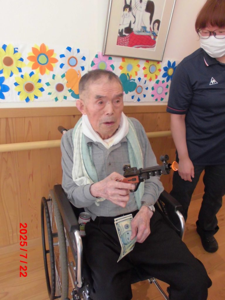 ゲームコーナーの射的では欲しい商品目がけて真剣な眼差しで狙い撃ちしていました。